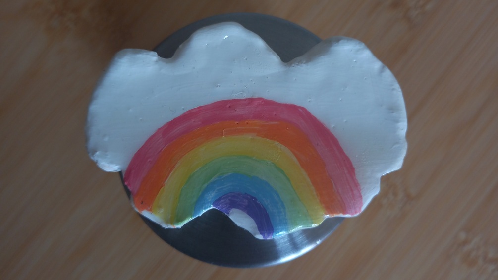 ¡Que nada nuble tu orgullo! Imán (de 7 cm) en pasta de modelar hecho y pintado a mano con acabo en resina cristal para una mayor dureza.