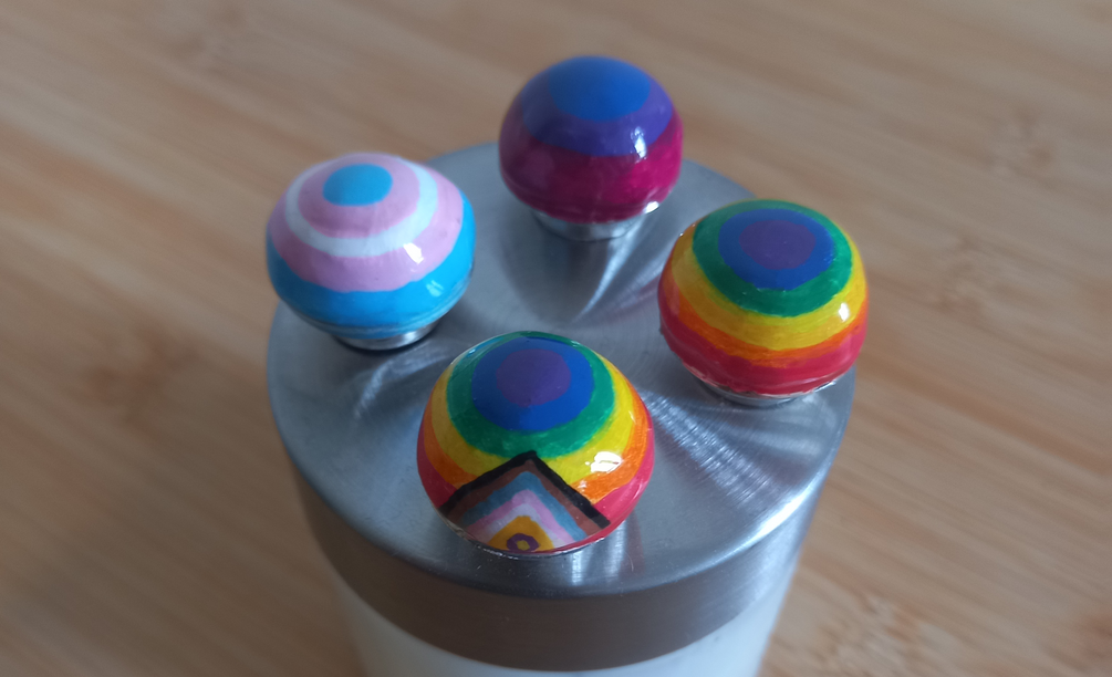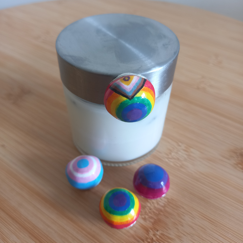 Imán (de ⌀2 cm) en pasta de modelar hecho y pintado a mano con acabo en resina cristal para una mayor dureza.